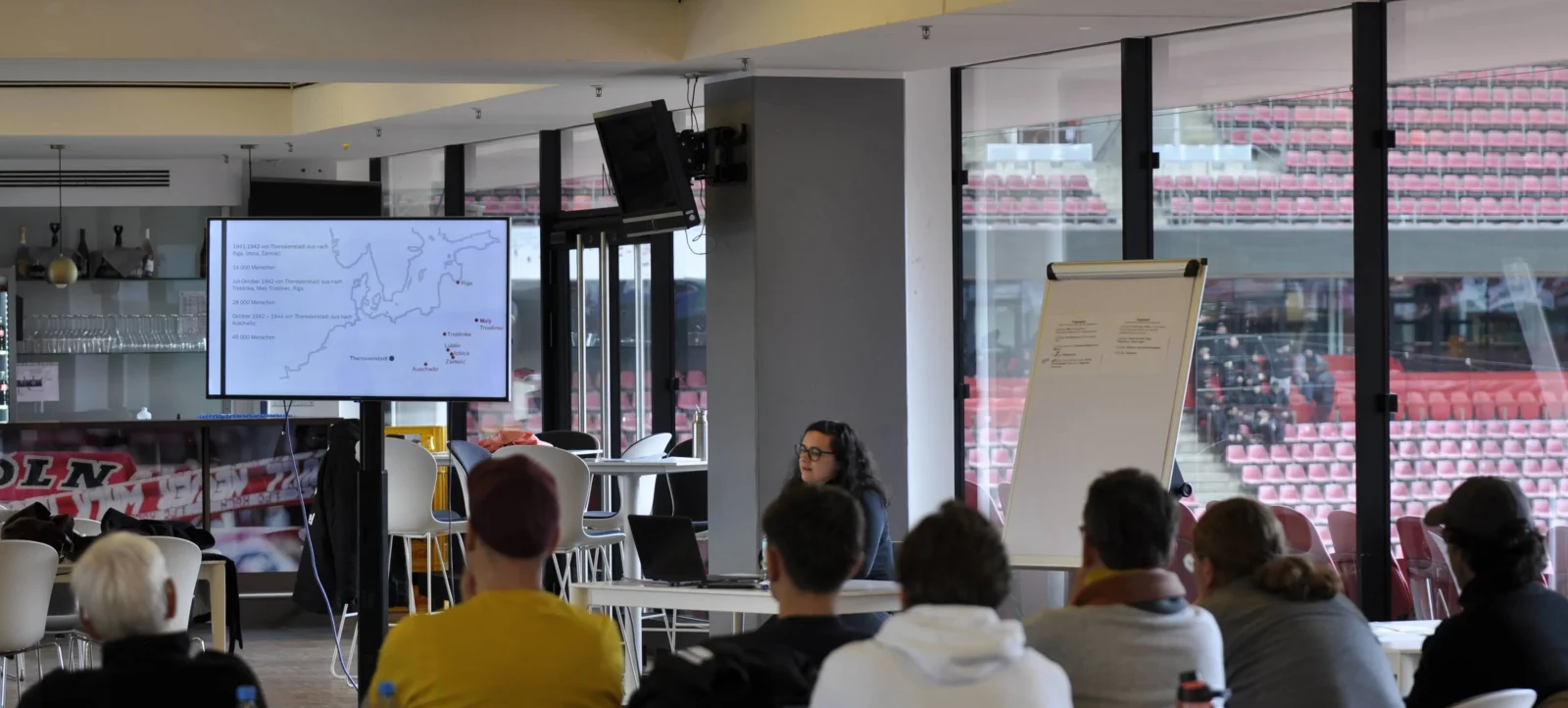 Organisiert wurde der Workshop vom 1. FC Köln in Kooperation mit dem Kölner Fanprojekt sowie Zeitreisen und ZWEITZEUGEN e.V.. Nach einer Vorstellungsrunde ging es direkt in die inhaltliche Arbeit: Schritt für Schritt näherten sich die Teilnehmenden der Geschichte an – von den historischen Hintergründen im „Protektorat Böhmen und Mähren“ über die nationalsozialistische Herrschaft bis hin zur Errichtung des Ghettos Theresienstadt.