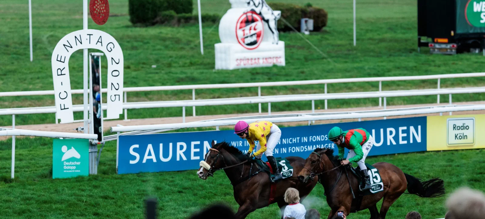Es ist jede Menge Familienspaß garantiert – und das für einen guten Zweck. Seit vielen Jahren versammeln sich an Ostermontag mehr als 10.000 Besucherinnen und Besucher auf der Kölner Galopprennbahn. Das Publikum erwartet wieder ein abwechslungsreiches Programm mit Autogrammstunde der FC-Spielerinnen und Spieler sowie acht Rennen. Rot-weiß soll die dominierende Farbe auf der Rennbahn sein, daher bekommen Besucherinnen und Besucher (ab 18 Jahren) einen Wettjeton im Wert von zwei Euro, wenn sie ihren FC-Fanschal mitbringen.