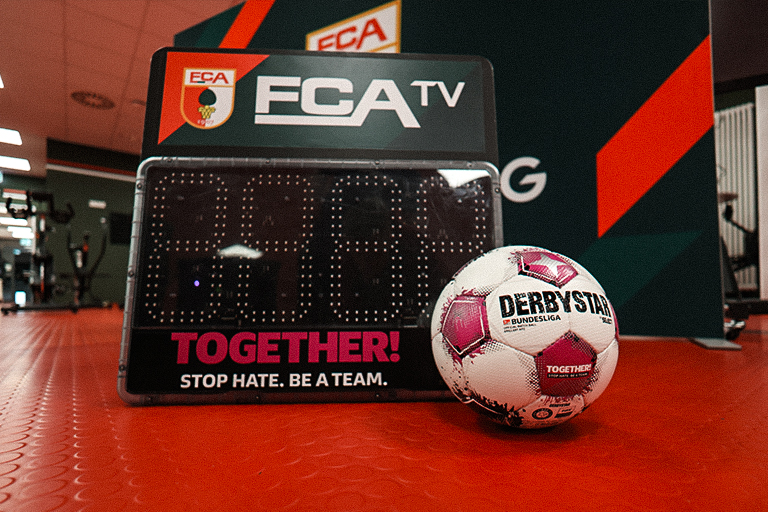 Der FCA unterstützte beim Heimspiel gegen den VfB Stuttgart den ligaweiten Aktionsspieltag unter dem Motto „TOGETHER! Stop Hate. Be a Team.“, der gemeinsam von DFL, DFL Stiftung und den 35 weiteren Proficlubs durchgeführt wurde.