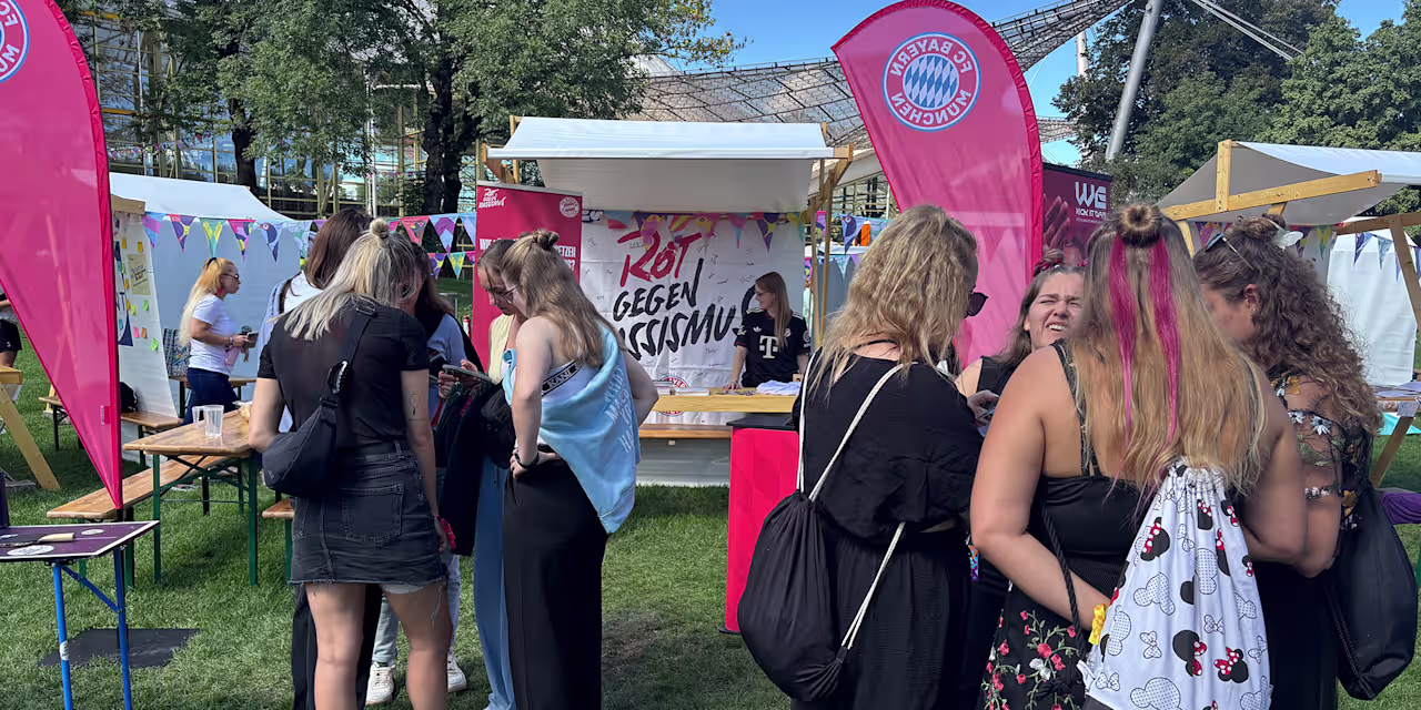 Wie in den vergangenen Jahren waren die „Rot gegen Rassismus“-Tattoos ein Renner unter den Festival-Gästen. Hinzu waren Shirts, Pins, Schlüsselanhänger, Armbänder, Postkarten und Orientierungshilfen, wenn jemand diskriminiert wird oder eine Diskriminierung mitbekommt, im Schatten des Olympiaturms gefragt. Die Initiative ist regelmäßig auf verschiedenen Veranstaltungen außerhalb des Sports präsent, um mit einem Blick über den Spielfeldrand hinaus für Vielfalt zu sensibilisieren. Der Verein möchte ein gestaltender Teil des gesellschaftlichen Lebens sein. Unter anderem hat er deshalb auch ein neues Ehrenamtsprogramm „PACK MA’S“ eingeführt, bei dem sich Mitglieder aktiv einbringen können, um andere zu unterstützen – nähere Infos unter packmas@fcbayern.com