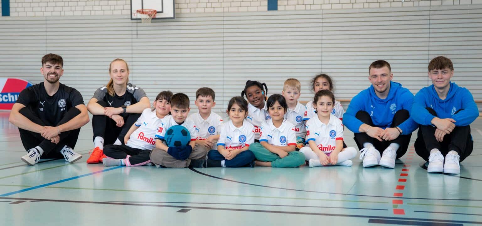 Seit dem 1. Februar dieses Jahres ist unser Verein an der Hans-Christian-Andersen-Grundschule sowie in der Kita Helmholtzstraße in Kiel-Gaarden aktiv. Ziel ist es, Kinder dort in Bewegung zu bringen, wo sie ihren Alltag verbringen – direkt in ihrem Stadtteil, in der Schule und Kita. Am vergangenen Donnerstag begleiteten unsere U19-Spieler Felix Lüth und Noah Ahlers eine Bewegungseinheit mit den Kindern beider Einrichtungen.