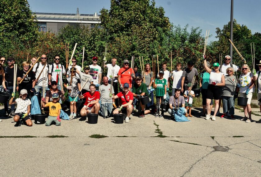 Am diesjährigen World Cleanup Day am Samstag, 16. September, wurden rund 40 Personen der FCA-Familie bei einer gemeinschaftlichen Aufräumaktion mit Unterstützung des Umweltbildungszentrum Augsburg aktiv. Bei strahlendem Sonnenschein und bestens ausgestattet mit Müllsäcken, Eimern, Greifzangen und Handschuhen wurde ab 12.00 Uhr die „Haunstetter Flugplatzheide“ unweit der WWK ARENA gesäubert.