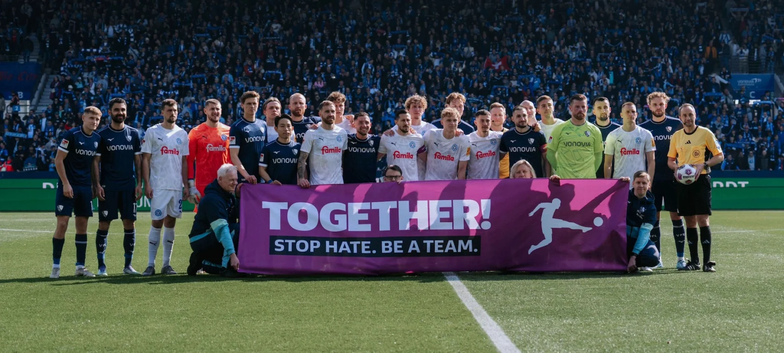 Im Rahmen der Internationalen Wochen gegen Rassismus beteiligte sich der VfL Bochum 1848 wieder an der DFL-Aktionsreihe „TOGETHER! Stop Hate. Be a team.“ und blickt nun auf viele gelungene Aktionen zurück, die für Vielfalt, Respekt und ein diskriminierungsfreies Miteinander standen. Ziel der verschiedenen Veranstaltungen und Maßnahmen war es, Aufmerksamkeit für das Thema zu schaffen, Austausch zu ermöglichen und gemeinsam ein klares Zeichen gegen Diskriminierung zu setzen – im Stadion, im Verein und darüber hinaus.