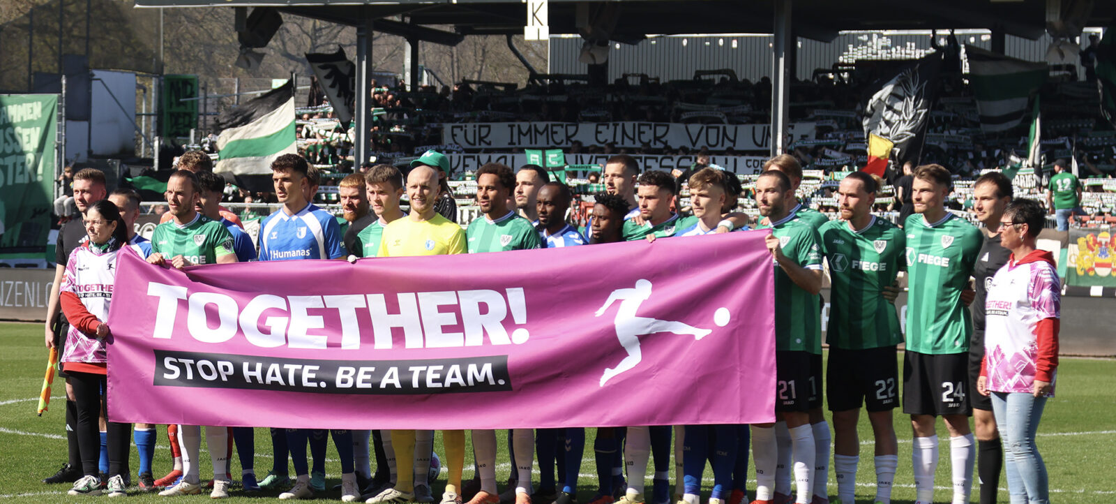 Ein Credo, so selbstverständlich, dass es natürlich in das Leitbild des Clubs aufgenommen wurde. Und ein Credo, das kein bisschen an Relevanz verloren hat, sondern tagtäglich gelebt werden muss. Im Rahmen der Internationalen Wochen gegen Rassismus hat die DFL daher zum TOGETHER!-Aktionsspieltag aufgerufen. Bereits im Vorfeld der Partie gegen den 1. FC Magdeburg hat der SC Preußen gemeinsam mit seinen Partnerschulen und der Stadt Münster in verschiedenen Workshops Lehrkräfte und auch Jugendliche für das Thema sensibilisiert. Beide Projekte wurden beim Heimspiel am Sonntag vorgestellt und stehen sinnbildlich für die antidiskriminierende Haltung, mit der sich jede Adlerträgerin und jeder Adlerträger zu identifizieren hat.